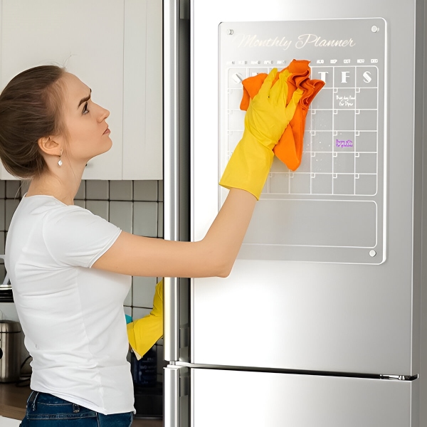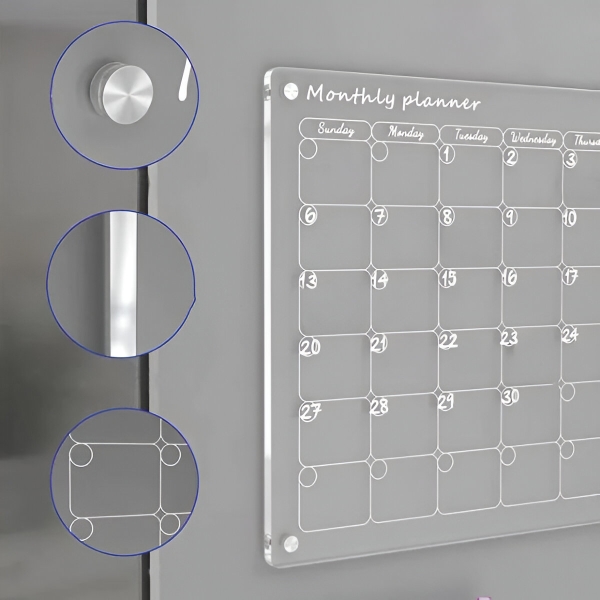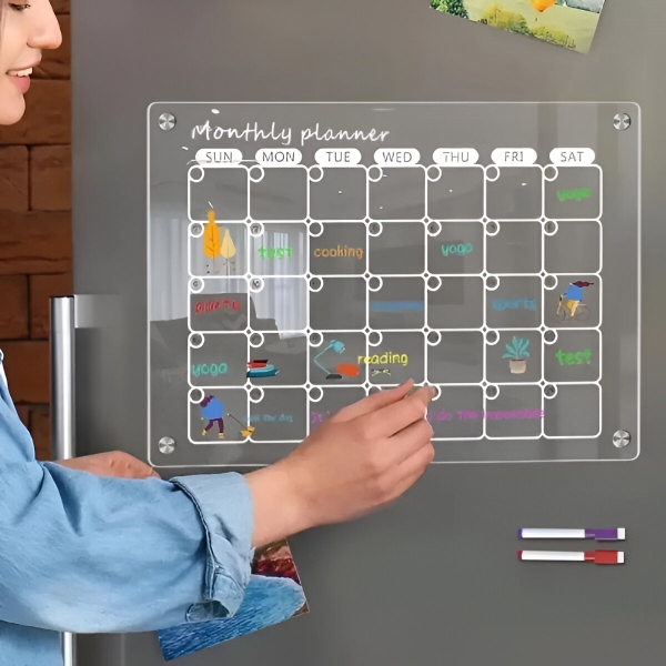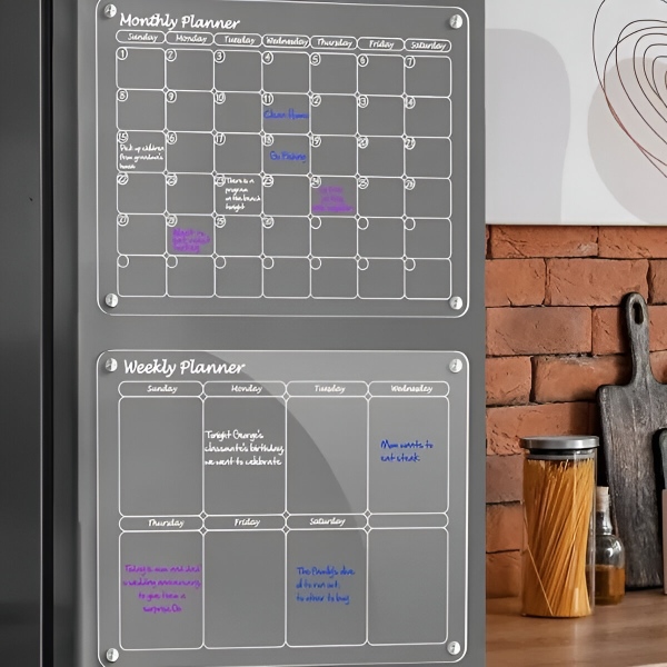 Het strakke, heldere acrylontwerp voegt niet alleen een modern tintje toe aan je keuken, maar biedt ook een efficiënte manier om je dagelijkse activiteiten te beheren.