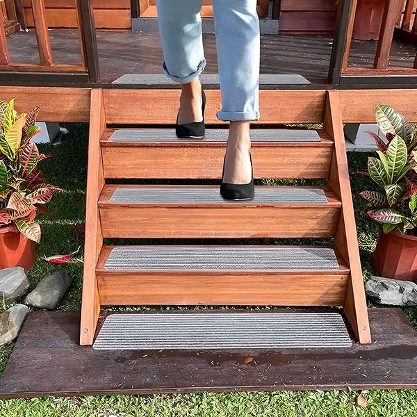 Perfect voor veranda’s, tuinpaden en patiotrappen, deze matten werken ook prachtig binnenshuis en voegen veiligheid en stijl toe aan elke trap in je huis.
