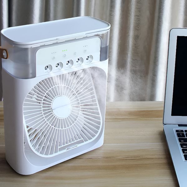 Deze draagbare airconditioner combineert een ventilator, airconditioner, aromaverstuiver, nachtlampje en luchtbevochtiger in één apparaat en biedt het hele jaar door comfort in elke ruimte.