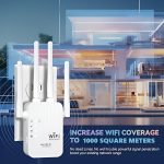 Met 4 krachtige antennes elimineert de WIFINA WiFi-versterker dode zones en biedt hij een sterke en stabiele WiFi-dekking in je hele huis of kantoor, tot 1000 vierkante meter.