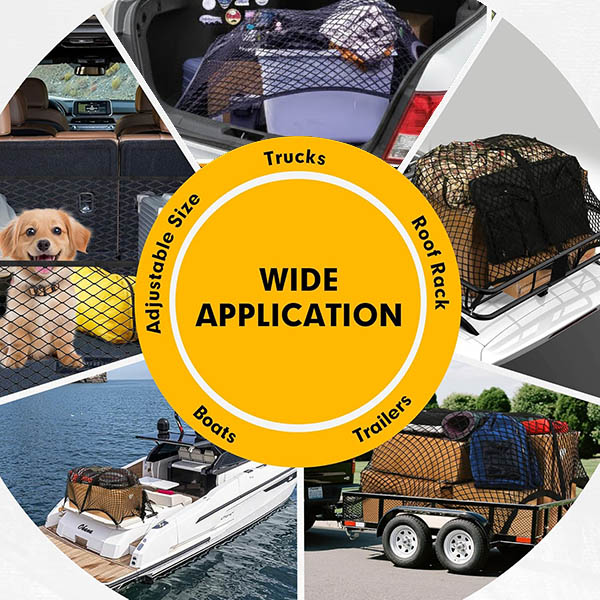 Ideaal voor dagelijkse boodschappen, gezinsuitstapjes, huisdieraccessoires, gereedschap, kampeeruitrusting, sportartikelen, strandspeelgoed of zelfs om losse spullen thuis te organiseren. Eén net — eindeloos veel toepassingen. Geschikt voor auto’s, SUV’s, bestelwagens, aanhangwagens, dakdragers en zelfs boten.