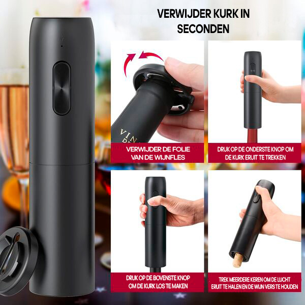 Met slechts één druk op de knop verwijdert je binnen enkele seconden alle kurken, zodat je meer tijd kunt besteden aan het genieten van je wijn en minder tijd aan het worstelen met de fles.
