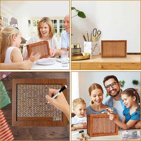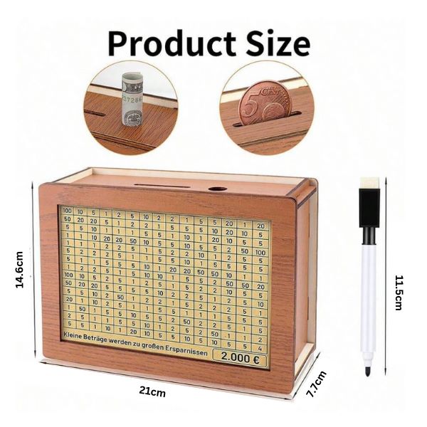 Stel je COINSAVE spaarpot in enkele minuten in! De meegeleverde marker en spaarkaartjes maken personalisatie eenvoudig. Het is een elegant ontwerp dat naadloos in je huis of kantoor past.