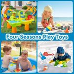De SANDLANDIA set is gemaakt van stevig plastic en is ontworpen om buitenomstandigheden te weerstaan, zodat je lang plezier hebt en veilig kunt spelen in de tuin of op het strand.