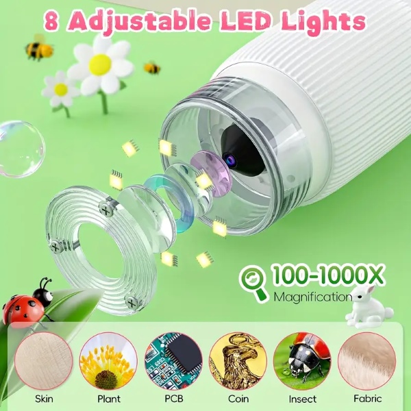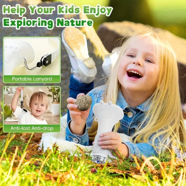 Zoomt tot 200x zodat kinderen details kunnen zien die ze nog nooit eerder hebben opgemerkt.