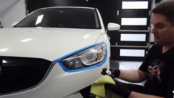 2. Breng vloeistof aan op een doek of direct op de koplamp.