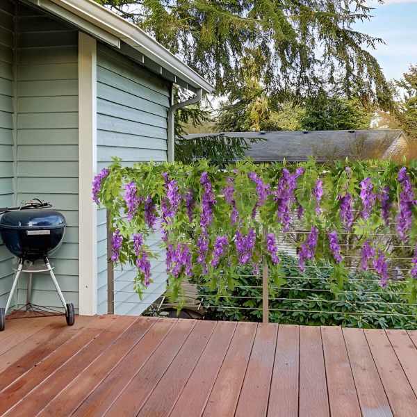 Je hebt geen last van ranken of bloemen die verwelken en verwelken. Onze blauweregen simulatie is gemaakt van zijde van hoge kwaliteit en flexibel plastic, waardoor ze hun vitaliteit voor altijd behouden. Deze duurzame bloemen zijn ontworpen om lang mee te gaan, zodat je een prachtige en duurzame decoratieve oplossing hebt.