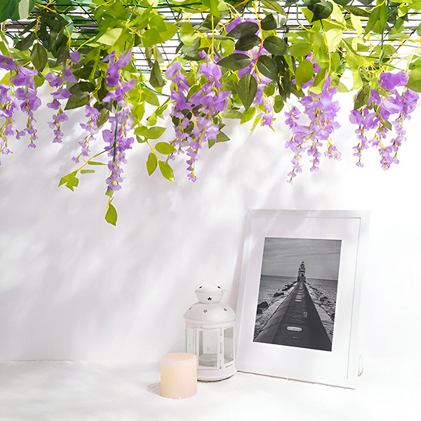 Wil je indrukwekkende bloemstukken maken? WISBLOOM, helder paarse blauwe regen, compleet met weelderige groene bladeren, is perfect voor het decoreren van bogen, hekwerken, muren, etalages, restaurants, kantoren, feesten en nog veel meer. Deze UV-bestendige en duurzame bloemen kunnen zowel binnen als buiten worden gebruikt en geven elke omgeving een levendig tintje.