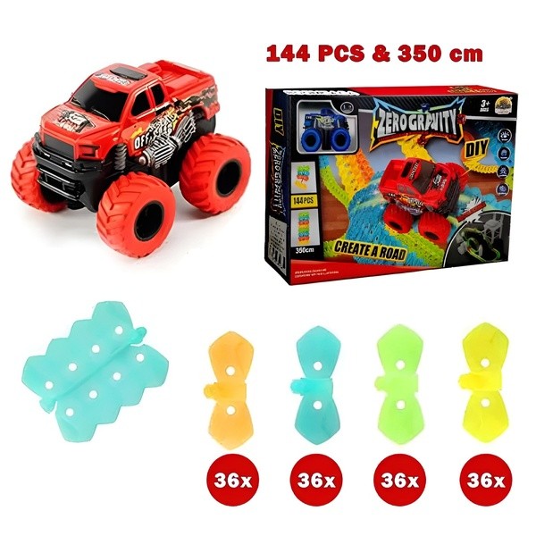 🚗 Je krijgt – 1x LUMITRACK-auto + 144x baanstukken