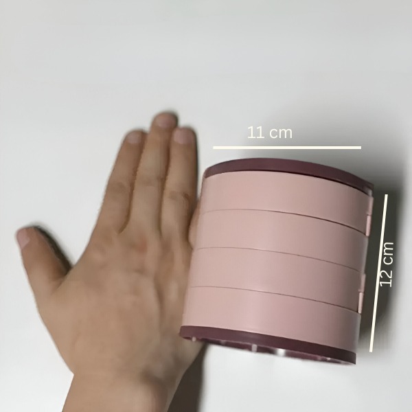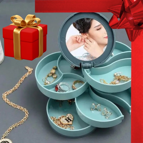 Draai de doos 360° om direct de sieraden te vinden die je nodig hebt – niet meer door stapels of lades graven.