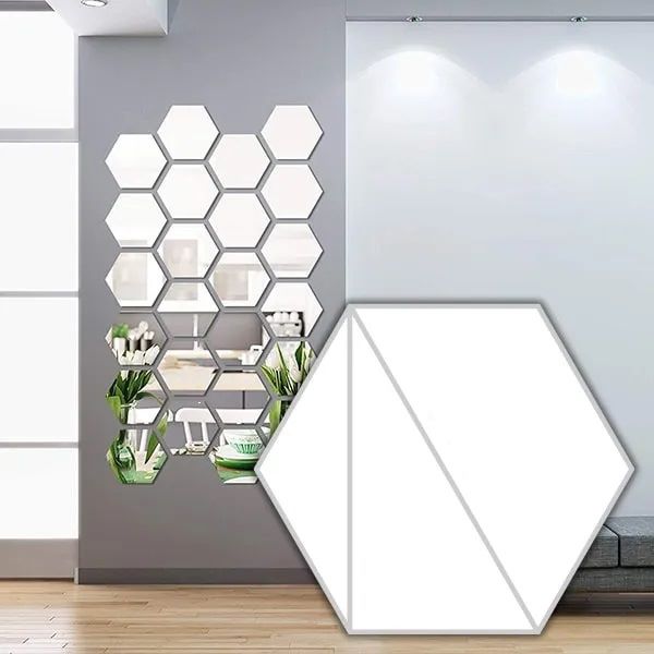 De zelfklevende zeshoekige spiegelstickers zijn een decoratieve toevoeging die het uiterlijk van je huis direct verbetert. Dit is een betaalbare en elegante manier om je muren te decoreren.