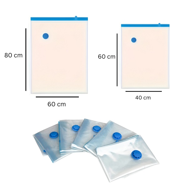 Te weinig opslagruimte? Bespaar tot 80% ruimte met onze vacuümopslagzakken! Gewoon inpakken – afsluiten – en de lucht eruit zuigen om omvangrijke items zoals kleding, dekens en beddengoed te verkleinen. Meer ruimte, minder rommel!