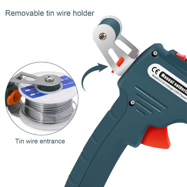 De soldeerbout kan met één hand worden bediend, dus je hoeft je handen niet opnieuw op de tindraad en het tinpistool te richten en je hoeft je geen zorgen te maken over het verbranden van je handen.