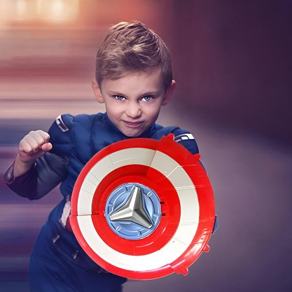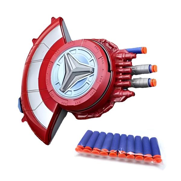 Laat je inspireren om een beroemde superheld te worden met een schild dat niet alleen verdedigt, maar ook zachte schuimdarts afvuurt voor spannend actiespel.