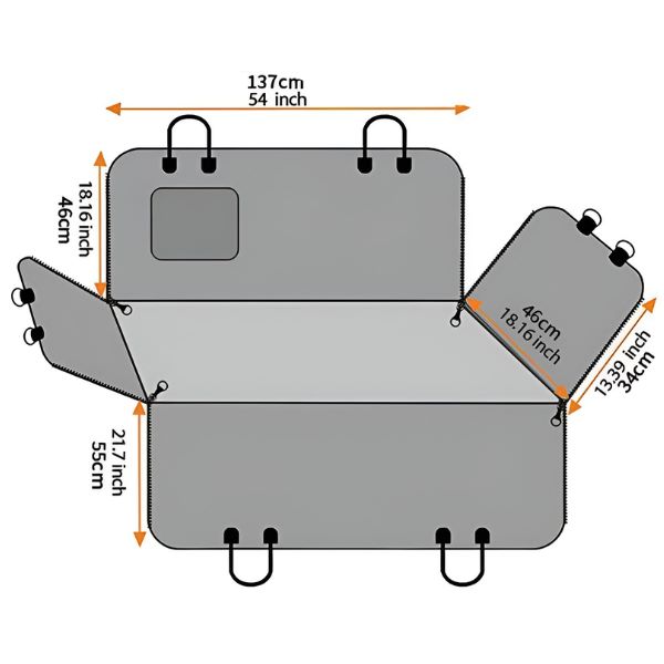 600D zwaar Oxford-materiaal beschermt tegen klauwen, poten en enthousiast graven — uw achterbank blijft als nieuw.