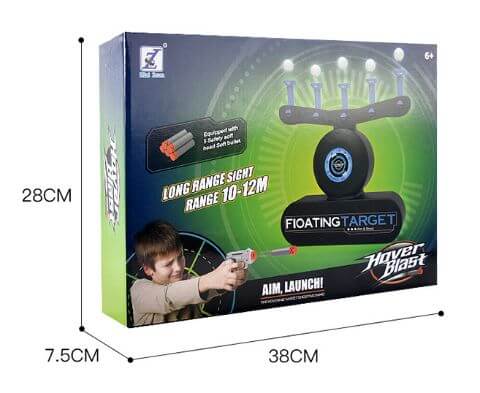 - Verpakkingsinhoud: 1 zwevend schietspeelgoed, 1 speelgoed blasterpistool, 3 speelgoedkogels