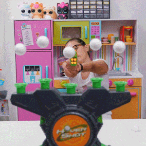 De installatie is eenvoudig: plaats de vijf ballen op de pilaren, zet het spel aan en de ballen zullen in de lucht zweven! Doe dan uw best om de ballen zo snel mogelijk neer te schieten met de bijgeleverde schuim dartblasters.